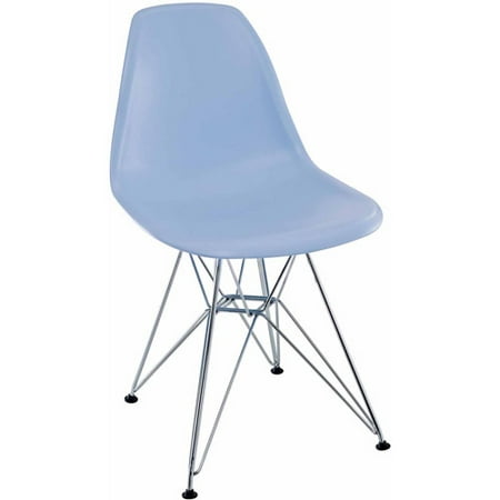Modway Paris Mid-Century Modern Molded Plastic Dining Chair with Steel Metal Base in Light Blue, 32.5" x 18.5" x 21"
