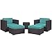 Convene Collection EEI-1809-EXP-TRQ-SET 5 PC Outdoor Patio Sectional Set with All-Weather Fabric Cushions, Powder Coated Aluminum Frame and Synthetic Rattan Weave Material in Espresso and Turquoise Color