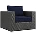 Modway Sojourn Wicker Rattan Outdoor Patio Sunbrella Fabric Armchair in Canvas Navy
