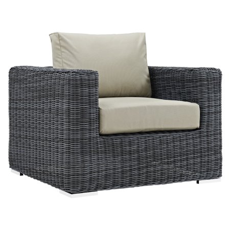 Modway Summon Wicker Rattan Outdoor Patio Sunbrella Armchair in Canvas Antique Beige