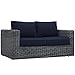 Modway EEI-1865-GRY-NAV Summon Wicker Rattan Outdoor Patio Sunbrella Loveseat in Canvas Navy