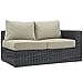 Modway Summon Wicker Rattan Outdoor Patio Sunbrella Right Arm Loveseat in Canvas Antique Beige