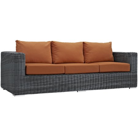 Modway Summon Wicker Rattan Outdoor Patio Sunbrella Sofa in Canvas Tuscan