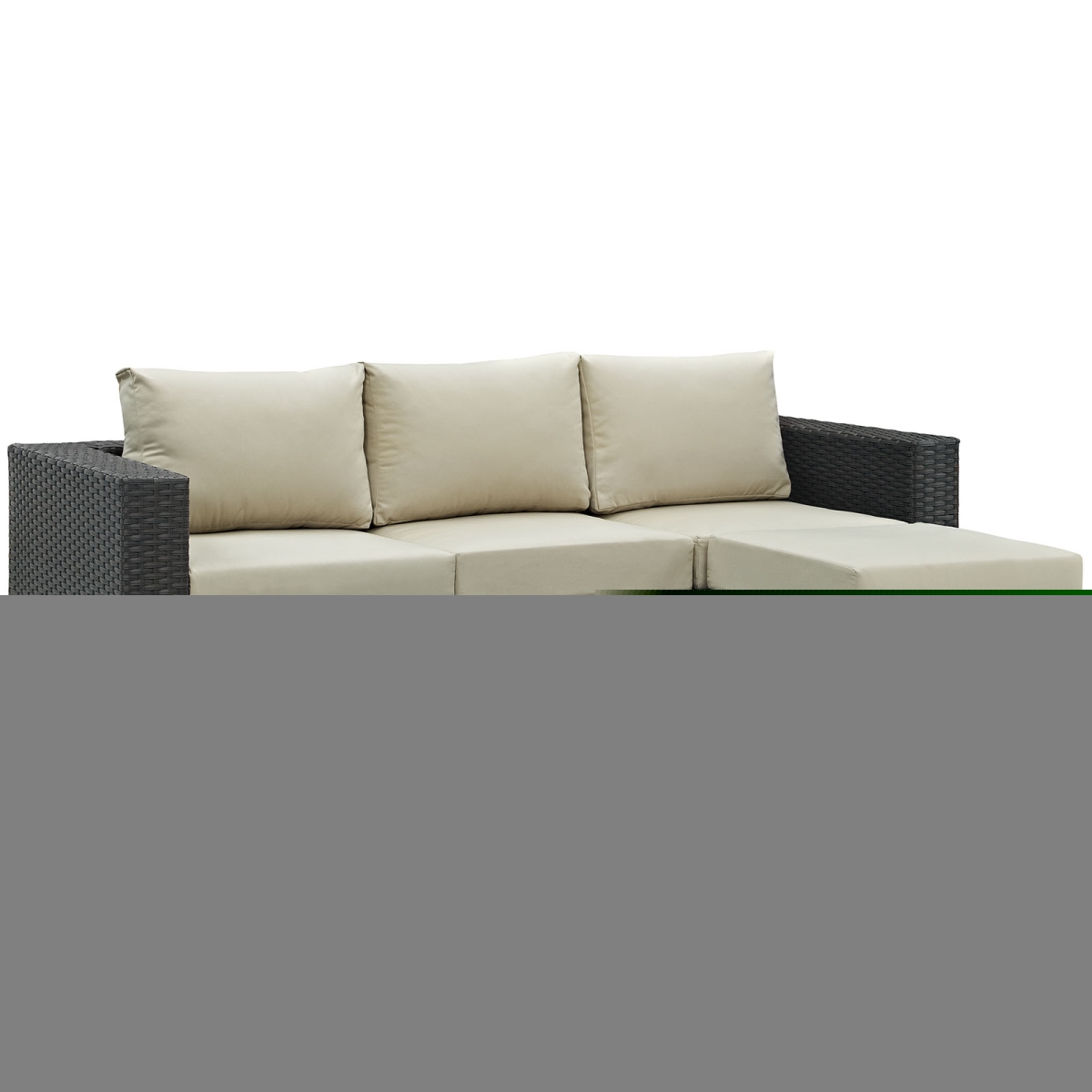 Modway Sojourn Wicker Rattan 3 Piece Outdoor Patio Sunbrella Sectional Set in Canvas Antique Beige