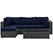 Modway Sojourn Wicker Rattan 5 Piece Outdoor Patio Sunbrella Sectional Set in Canvas Navy