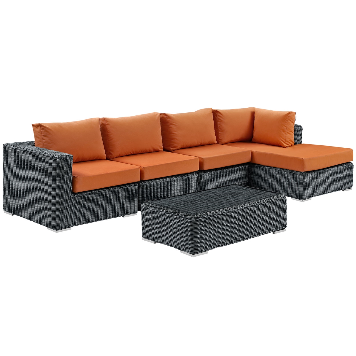 Modway Summon 5-pc Outdoor Patio Sectional Set With Sunbrella Cushions in Canvas Tuscan