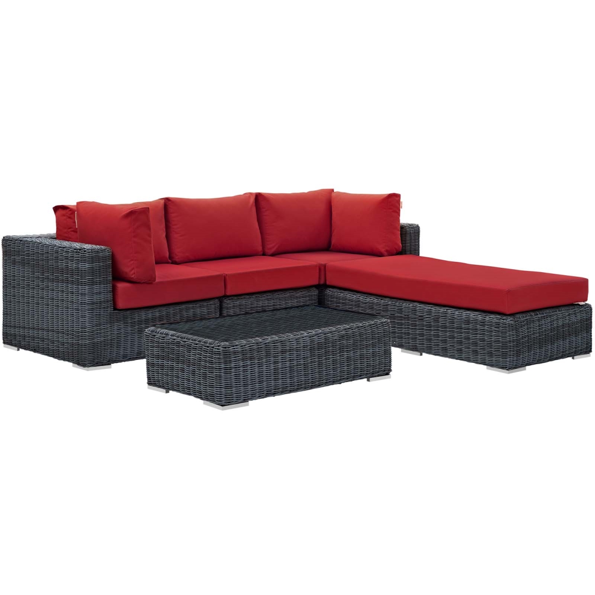 Modway Summon 5-pc Outdoor Patio Sectional Set With Sunbrella Cushions in Canvas Red