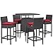 Convene Collection EEI-1963-EXP-RED-SET 5 PC Outdoor Patio Pub Set with 4 Bar Stools, Square Glass Top Table, Powder Coated Aluminum Frame and Synthetic Rattan Weave Materials in Espresso and Red Color