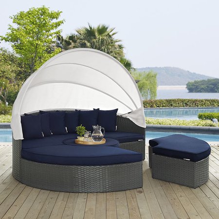 Modway Sojourn Outdoor Patio Sunbrella Sectional Daybed with Canopy in Canvas Navy