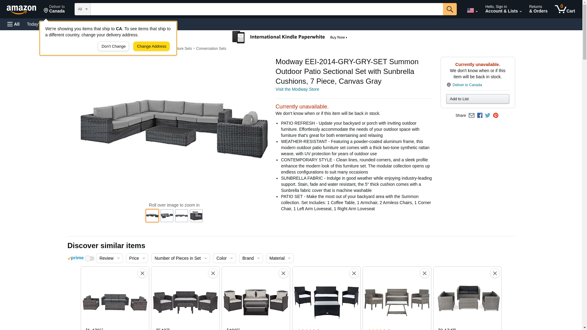 Modway EEI-2014-GRY-GRY-SET Summon 7 Piece Outdoor Patio Sunbrella Sectional Set in Canvas Gray, Seating for Eight