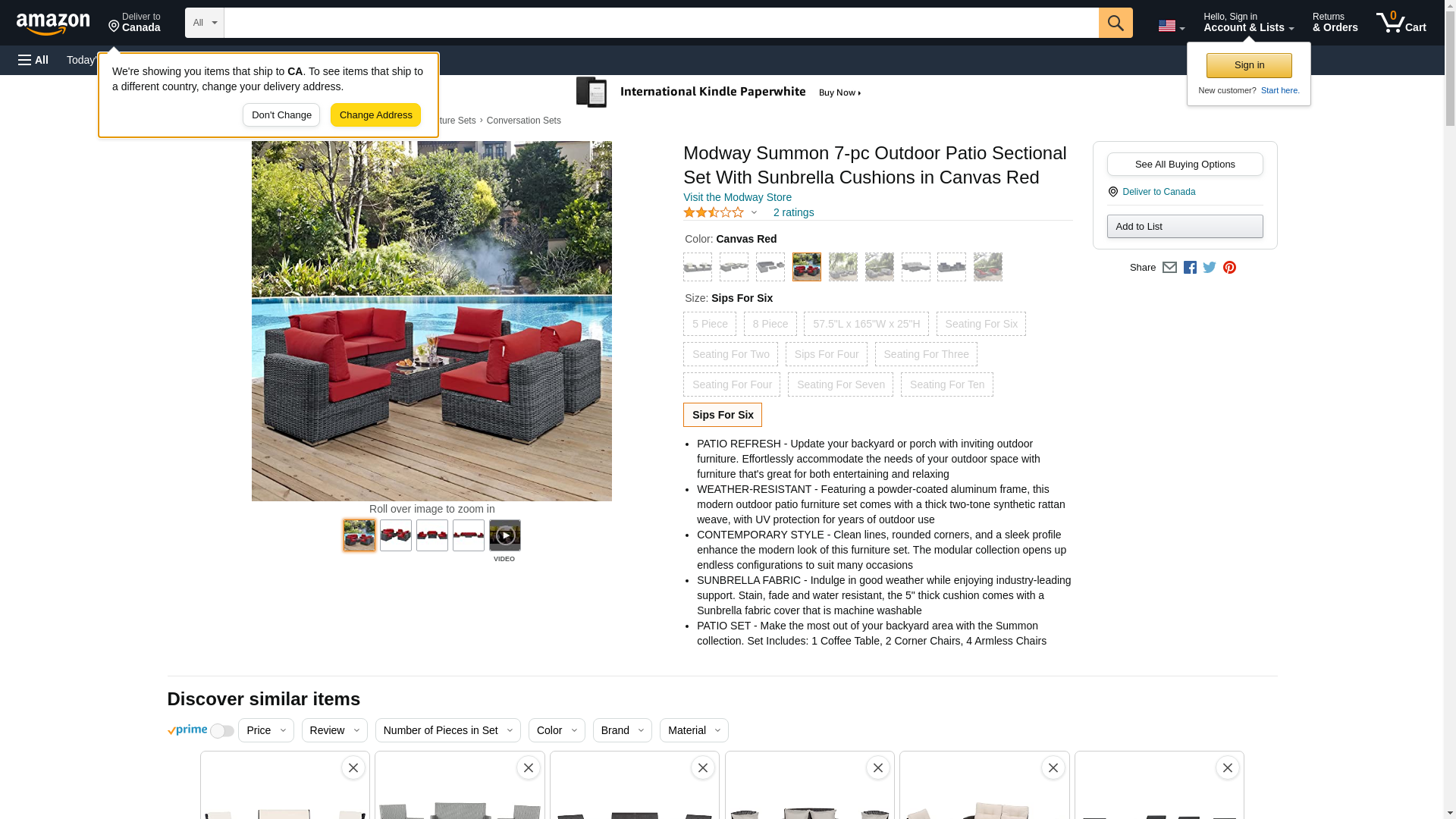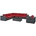 Modway EEI-2014-GRY-RED-SET Summon 7 Piece Outdoor Patio Sunbrella Sectional Set, Seating for Eight, Red