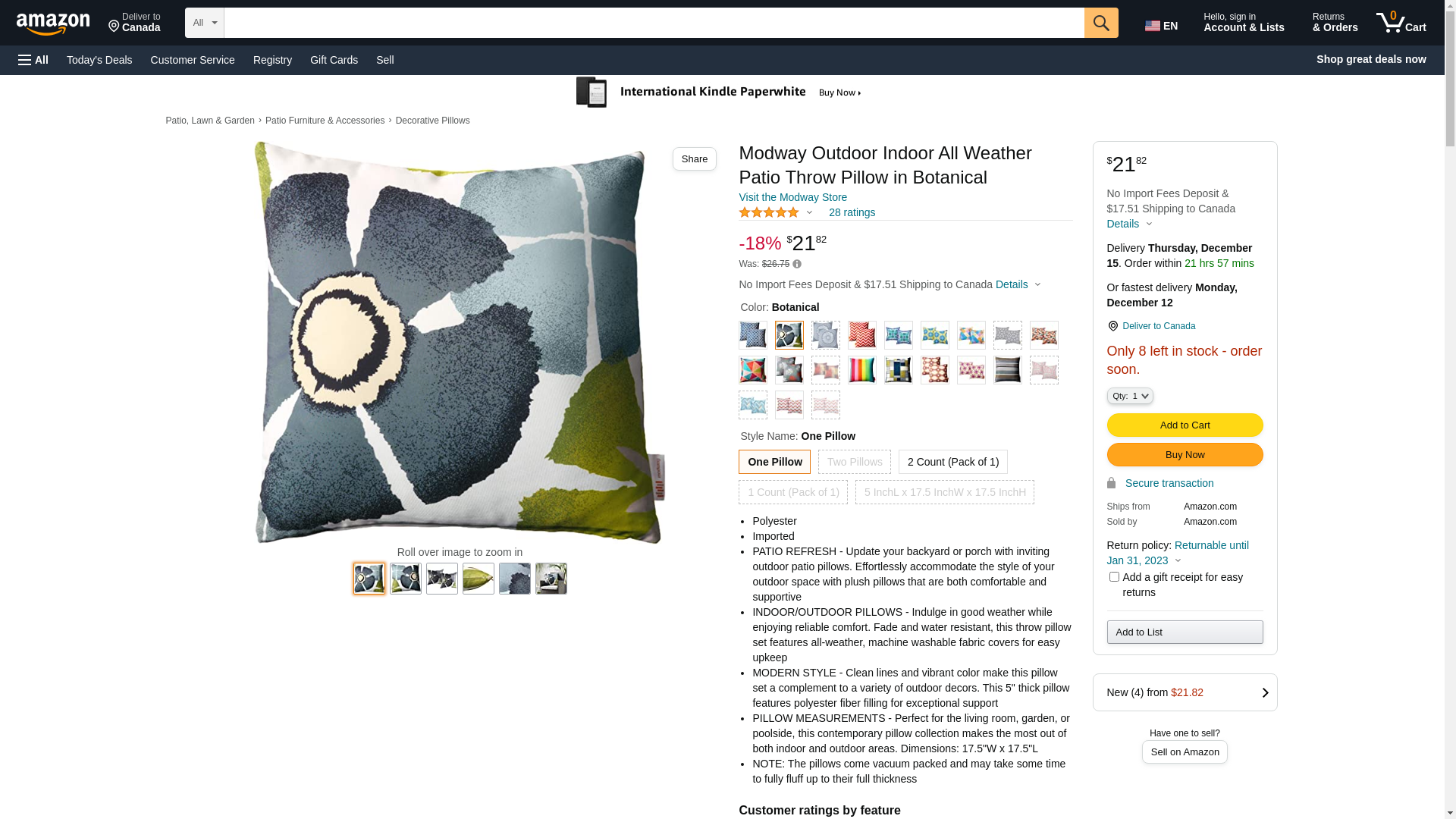 | Feature | Indoor/Outdoor Throw Pillow |