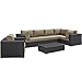 Modway Convene Wicker Rattan 7-Piece Outdoor Patio Sectional Sofa Furniture Set in Espresso Mocha