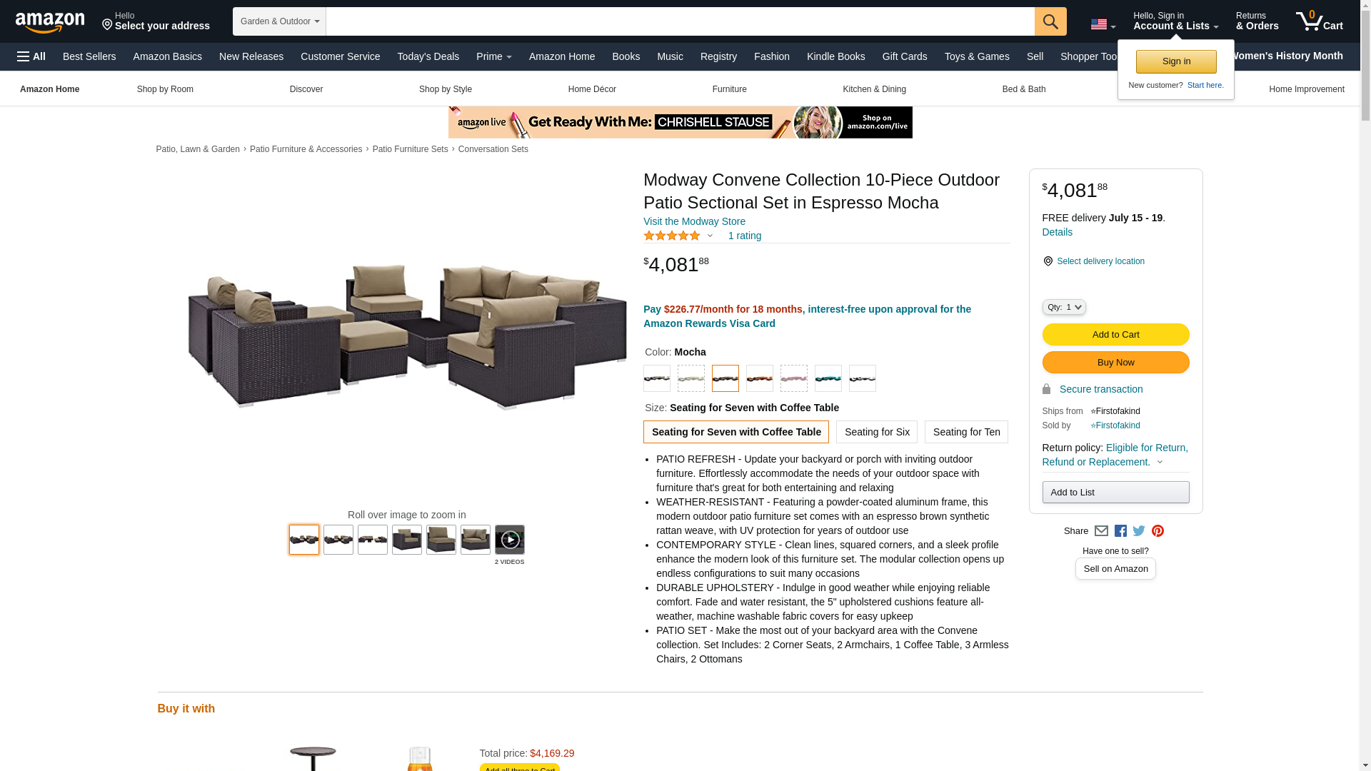 Modway Convene Collection EEI-2162-EXP-MOC-SET 7-Piece Outdoor Patio Sectional Set with Corner Section Left & Right Arm Loveseat 2 Armless Sections Coffee Table and Armchair in Espresso a