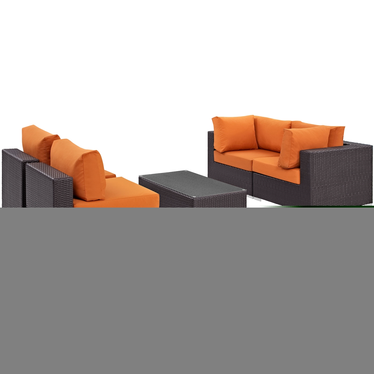 Modway Convene Wicker Rattan 5-Piece Outdoor Patio Furniture Set in Espresso Orange