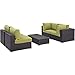 Convene Collection EEI-2163-EXP-PER-SET 5 PC Outdoor Patio Sectional Set with Powder Coated Aluminum Frame, Washable Cushion Covers and Synthetic Rattan Weave Material in Espresso and Peridot Color