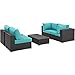 Modway Convene Wicker Rattan 5-Piece Outdoor Patio Furniture Set in Espresso Turquoise