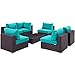 Modway EEI-2164-EXP-TRQ-SET Convene Outdoor Patio Sectional Set, Espresso Turquoise - 7 Piece