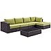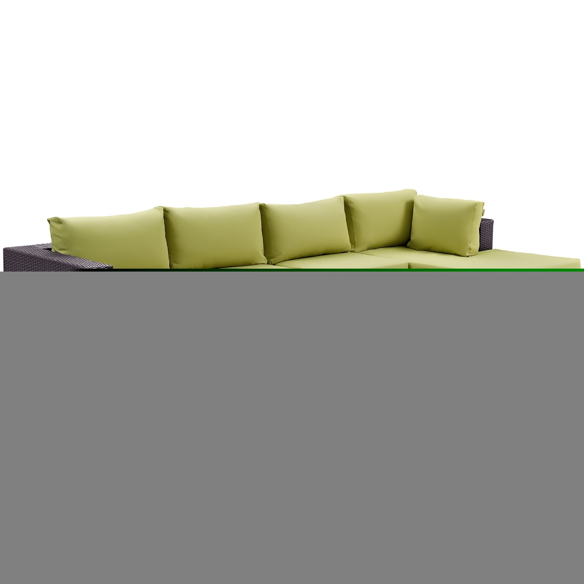 Modway Convene Wicker Rattan 5-Piece Outdoor Patio Sectional Sofa Furniture Set in Espresso Peridot