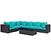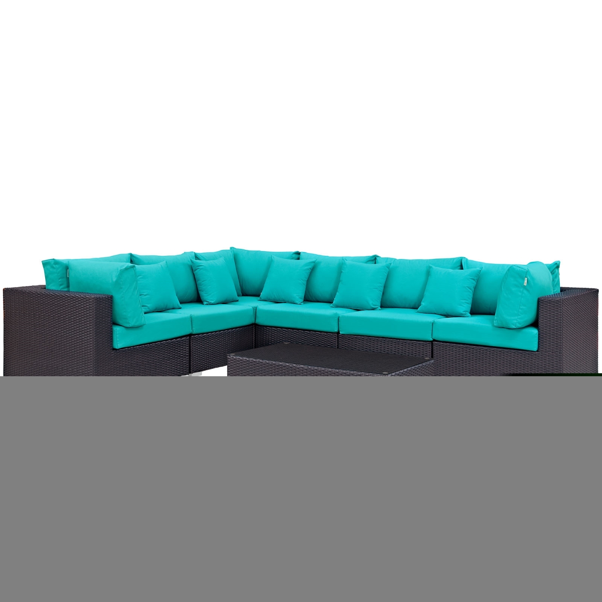 Modway Convene 7 Piece Patio Sectional Set in Espresso and Turquoise