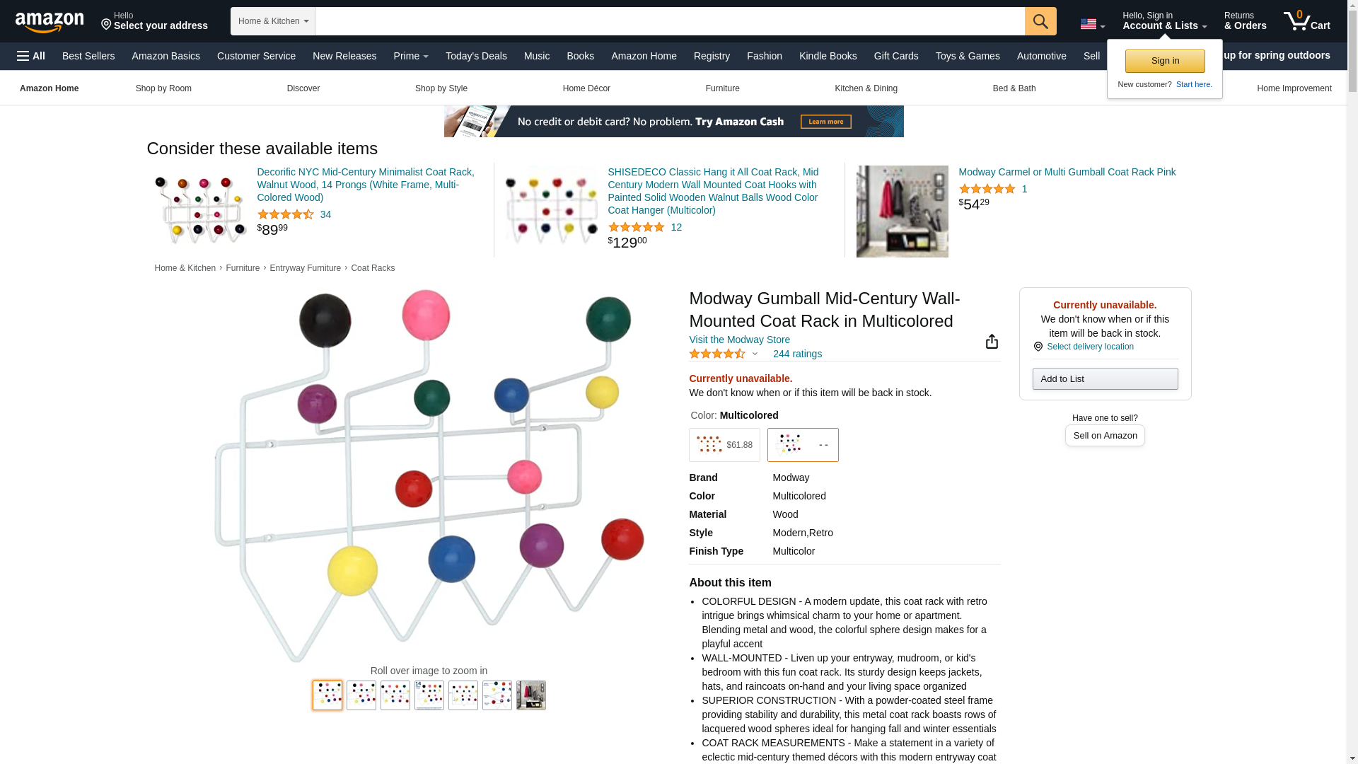 EEI-216-MULTI Gumball Coat Rack in Multicolored Color