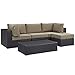 Modway Convene Wicker Rattan 5-Piece Outdoor Patio Sectional Sofa Furniture Set in Espresso Mocha