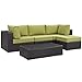 Convene Collection EEI-2172-EXP-PER-SET 5 PC Outdoor Patio Sectional Set with Powder Coated Aluminum Frame, Washable Cushion Covers and Synthetic Rattan Weave Material in Espresso and Peridot Color