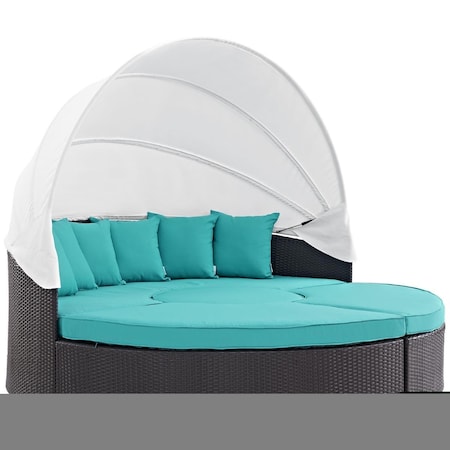 Modway Convene Wicker Rattan Outdoor Patio Retractable Canopy Round Poolside Sectional Sofa Daybed with Cushions in Espresso Turquoise