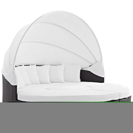 Modway Convene Wicker Rattan Outdoor Patio Retractable Canopy Round Poolside Sectional Sofa Daybed with Cushions in Espresso White