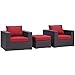 Modway Convene Wicker Rattan 3-Piece Outdoor Patio Furniture Set in Espresso Red