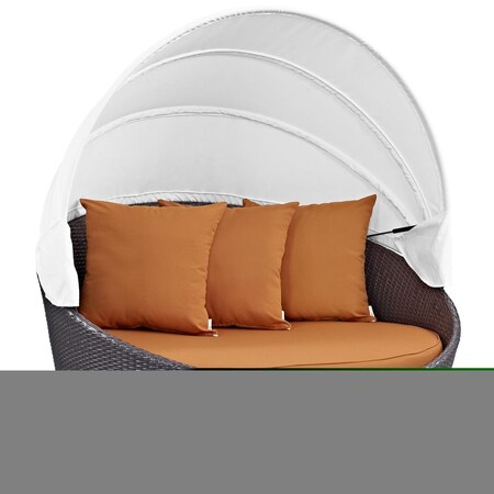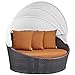 Modway Convene Wicker Rattan Outdoor Patio Retractable Canopy Round Poolside Sofa Daybed in Espresso Orange