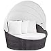 Modway Convene Wicker Rattan Outdoor Patio Retractable Canopy Round Poolside Sofa Daybed in Espresso White