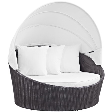 Convene Collection EEI-2175-EXP-WHI 63" Canopy Outdoor Patio Daybed with 3 Throw Pillows, Fabric Cushion, Powder Coated Aluminum Tube Frame, UV and Water Resistant in Espresso and White Color
