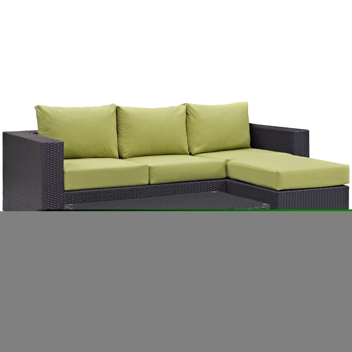Modway Convene Wicker Rattan 3-Piece Outdoor Patio Furniture Sofa Set in Espresso Peridot