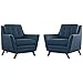 Modway Beguile Mid-Century Two Modern Armchair Set Upholstered Fabric in Azure