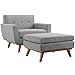 Modway Engage Mid-Century Modern Upholstered Fabric Accent Armchair and Ottoman in Expectation Gray