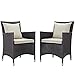 Convene Collection EEI-2188-EXP-BEI-SET 2 PC Outdoor Patio Dining Set with Fabric Cushions, Water Resistant, Powder Coated Aluminum Frame and Synthetic Rattan Weave in Espresso and Beige Color