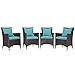 Convene Collection EEI-2190-EXP-TRQ-SET 4 PC Outdoor Patio Dining Set with Synthetic Rattan Weave, Powder Coated Aluminum Frame, All-Weather Fabric Seat Cushions, Water and UV Resistant in Espresso and Turquoise Color