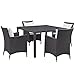 Modway Convene Wicker Rattan 5-Piece Outdoor Patio Dining Set with 47" Square Dining Table and Four Dining Arm Chairs in Espresso White