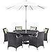 Gather stages of sensitivity with the Convene outdoor sectional series Made with a synthetic rattan weave and a powdercoated aluminum frame Convene is a versatile outdoor collection that shifts and combines according to the spontaneous needs of the moment Outfitted with allweather fabric cushions leave a positive impression on friends and family while enhancing your patio backyard or poolside repast in this series of palpable distinction This installment of the series is an Outdoor Patio Dining Table Features. Synthetic Rattan Weave. Powder Coated Aluminum Frame. Water UV Resistant. Machine Washable Cushion Covers. 8 PieceSet Includes. One 300cm 118 Umbrella and Metal Pole. One Convene 59 Round Dining Table. Six Convene Dining ArmchairSpecifications. Color Espresso Beige. Assembly Required Yes. Armrest Dimension 255 H. Backrest Dimension 18 H. Armrest Dimension 255 H. Seat Dimension 195 L x 19 W x 165 H. Overall Armchair Dimension 255 L x 245 W x 345 H. Overall Table Dimension 59 L x 59 W x 29 H. Weight 259 lbs