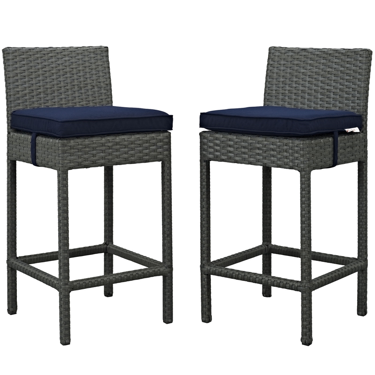 Modway Sojourn 2 Piece Outdoor Patio Bar Stools Pub Set With Sunbrella Brand Navy Canvas Cushions