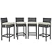 Modway Summon 4 Piece Outdoor Patio Bar Stool Pub Set with Sunbrella Brand Antique Beige Canvas Cushions