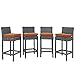 Modway Summon 4 Piece Outdoor Patio Bar Stools Pub Set With Sunbrella Brand Tuscan Orange Canvas Cushions