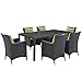 Modway Convene Wicker Rattan 7-Piece Outdoor Patio Dining Set with 71" Rectangle Dining Table and Six Dining Arm Chairs in Espresso Peridot