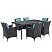 Convene Collection EEI-2199-EXP-TRQ-SET 7 PC Outdoor Patio Dining Set with Synthetic Rattan Weave Material, Powder Coated Aluminum Frame and All-Weather Fabric Cushions in Espresso and Turquoise Color
