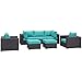 Convene Collection EEI-2200-EXP-TRQ-SET 7-Piece Outdoor Patio Sectional Set with Armless Section, 2 Armchairs, 2 Corner Sections and 2 Ottomans in Espresso and Turquoise