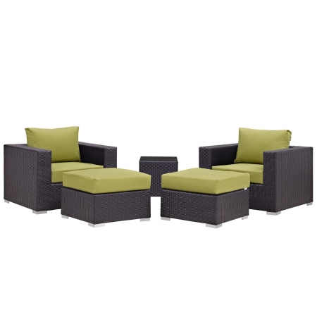 Modway Convene Wicker Rattan 5-Piece Outdoor Patio Furniture Set in Espresso Peridot