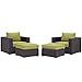 Convene Collection EEI-2202-EXP-PER-SET 4 PC Outdoor Patio Sectional Set with Water Resistant, Powder Coated Aluminum Frame, Synthetic Rattan Weave Material and Fabric Cushion Cover in Espresso and Peridot Color