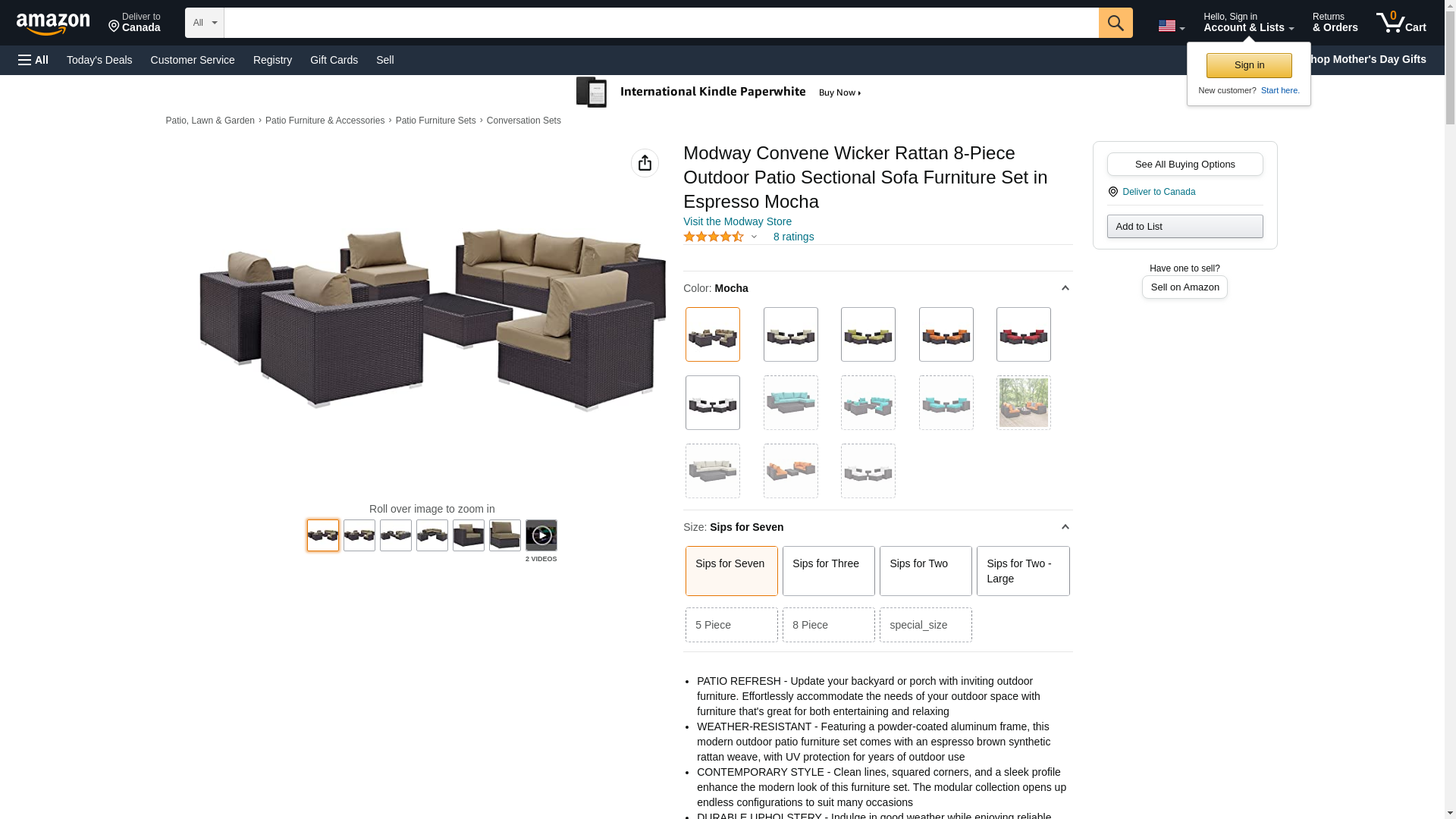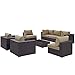 Modway Convene Wicker Rattan 8-Piece Outdoor Patio Sectional Sofa Furniture Set in Espresso Mocha