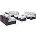 Convene Collection EEI-2204-EXP-WHI-SET 8 PC Outdoor Patio Sectional Set with Water Resistant, Powder Coated Aluminum Frame, Synthetic Rattan Weave Material and Fabric Cushion Cover in Espresso and White Color
